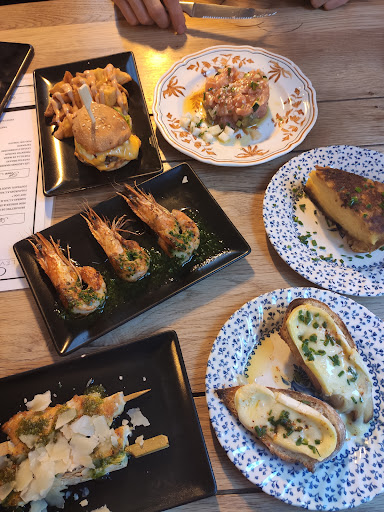 Cependant au moment de commander, on nous annonce que beaucoup de choses sont en rupture car vendredi le stock s'est vidé.. ça aurait été bien de nous prévenir à la réservation (première erreur)... évidemment les choses typiquement espagnoles qu'on voulait n'étaient pas disponible.. un bar a tapas sans jambon pata negra c'est un peu étonnant... surtout que ça se conserve très longtemps... mais ce n'était pas la seule chose en rupture malheureusement... on a donc composé comme on pouvait... mais cela aurait été bien de prévenir à la réservation... également à notre arrivée plutot que de nous laisser nous installer et prendre l'apéro avant de nous prévenir... malgré les excuses ce n'est pas acceptable. Maintenant niveau qualité, ayant vécu en Espagne et étant un habitué du PETIT BARCELONE à Paris (un vrai restaurant tapas), j'ai trouvé ça très decevant... ce n'était pas mauvais mais au prix trop élevés qui sont pratiqués, on peut exiger des portions plus généreuses ainsi qu'une qualité un cran au dessus... nous n'irons plus ça c'est sur.. apres une facture de 130eu pour 4, on a finit dans un autre restaurant pour manger une deuxieme fois ayant encore faim... ce qui n'est pas normal et qui a finit par nous couter cher... donc à la limite y aller pour l'apéro... mais pas plus... mais les prix trop élevés font que perso je n'y retournerai pas même pour l'apéro.. cocktail a 11euros... je ne parle meme pas du mini hamburger et ses 4 morceaux de patatas bravas... ridicule.; la viande est bonne, mais la tostinette chedar president est froide , et la présentation, je fais mieux chez moi pour bcp moins cher... d'ailleurs les patatas bravas sont servies avec une sauce coktail (ketchup mayo), pas degueu mais bien loin de la vraie sauce....