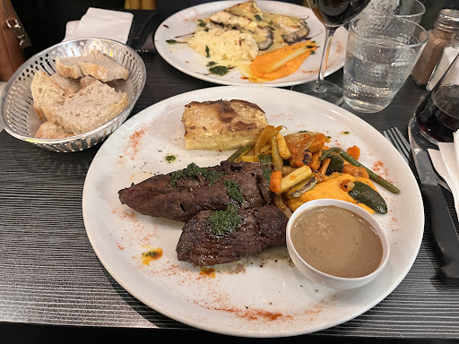 Read moreYesterday we have en excellent diner here. We didn’t make a reservation, but there was a table for 2 at the heated terrace. I enjoyed a Velouté with seafood an my husband a salad with goat cheese, big prawns. Main course I had hanger steak medium rare and my husband turbot. We shared the grand dessert. Drinks half bottle red wine and bottle of mineral water. Including 2 coffee we paid 95,00 euro. The restaurant is on a walking distance of our hotel...