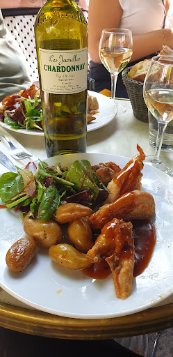 During our visit to Saint Germain en-Laye, we were in search of a pleasant dining spot, and Café Jule caught our attention with its charming and inviting private courtyard at the back. Initially, the waitstaff appeared friendly and accommodating as they welcomed us to take a table. We were seated in a shaded area, which provided a calm atmosphere, despite the nearby playground. However, we noticed that the table we were assigned hadn't been properly cleaned after the previous customers. Although the waiters cleared the glasses and plates, they neglected to wipe the table. When we kindly requested for the table to be cleaned, one of the waiters merely smeared the gravy and wine residue across the surface. While it's possible that the cloth he used contained soap and disinfectant, the table remained sticky. I decided to visit the restroom to wash my hands, but I found that there was only one toilet stall available while the rest were urinals. After using the urinals, I was disappointed to discover that there was no soap available to wash my hands. I informed a waiter about the issue, and he assured me that he would address it. However, upon leaving, the restroom soap dispenser still remained empty. Back at our table, our waiter was friendly and recommended the daily specials, which sounded appetizing. We opted for four servings of the roasted poultry with potatoes and a salad, along with a mozzarella and tomato board. The mozzarella was enjoyable, accompanied by tangy tomatoes and pesto sauce. The chicken was served with a delightful French gravy sauce. However, the poultry itself was overcooked and excessively dry, making the sauce insufficient to counterbalance its lack of moisture. The roasted potatoes, though flavorful, were cold, despite being well-cooked and tender. We ordered a pitcher of water, but it arrived at our table warm. We politely requested a cooler pitcher, to which the waiter rudely replied that he couldn't cool the water. Fortunately, one of my friends argued that the initial pitcher wad cool meanwhile this one wasn't even at room temperature and was, in fact, hot. Eventually, they brought us a cooler pitcher. Overall, we left disappointed with our experience. The ambiance was pleasant and suitable for families, and the waitstaff initially appeared friendly, although something may have occurred to put them off. I hope it wasn't anything serious. I might consider returning for drinks in the future, but sadly...