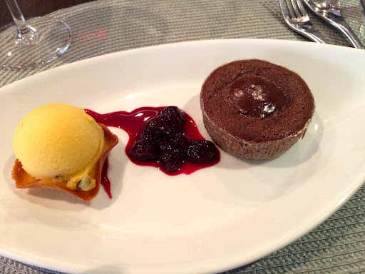 NĂ©anmoins : impression de gĂȘner, de dĂ©ranger, tout au long du repas pas un sourire pendant le service - juste le minimum, et encore ! des assiettes posĂ©es sans dĂ©licatesse (presque "jetĂ©es" sur la table) on nous observait depuis le pas de la porte (j'ai vu 2 serveurs diffĂ©rents le faire), l'air de penser "bon, quand est-ce qu'ils s'en vont, ceux-lĂ ?" - nous n'Ă©tions pourtant pas les derniers... Les tables de la terrasse ont Ă©tĂ© ostensiblement pliĂ©es pendant que nous en Ă©tions Ă nos cafĂ©s gourmands ; et notre table a Ă©tĂ© dĂ©barrassĂ©e alors que je n'avais mĂȘme pas fini mon cafĂ© !