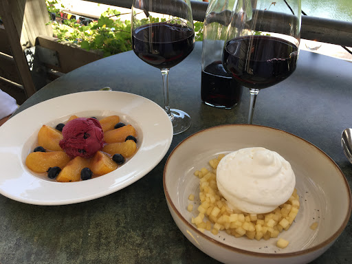 Pour terminer. Dessert "abricots au romarin avec boule de glace citron vert" đ€ź. Le plat est arrivĂ© brĂ»lant, je me suis mĂȘme brĂ»lĂ© avec les abricots. Trop de romarin, bref . TrĂšs mauvais Ă©quilibre, que ce soit sur le chaud/froid ou sur le sucrĂ©/salĂ© croquant/mou. C'est ratĂ©.