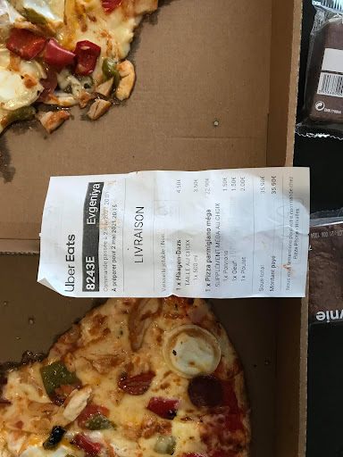 Read moreLa honte !! Pizza Mega commandée via Uber Eats le 02/05/21. Déjà, pour Mega, faut revoir le nom. 40cm de diamètre, c'est pas "Mega". Ensuite, la pizza nous a été livrée coupée en 2, et mise dans 2 boites différentes. Ils ne sont pas en mesure de livrer ce qu'ils vendent. Outre le visuel degueulasse à réception, les ingrédients de la pizza ne sont pas frais, ce sont des produits de conserve au goût infect. Les poivrons hyper salés et mous, beurk... 28€ pour cette horreur, franchement, c'est scandaleux!! Nous avions commandé une glace en dessert, facturée 8€, nous avons eu 2 brownies en sachet industriels, à 0.50€ pièce. Personne ne prévient, on est mis devant le fait accompli. Nous avons appelé pour partager notre mécontentement : interlocuteur pas concerné du tout, qui ne s'excuse pas et, je cite "on a toujours fait comme ça, ça n'a jamais posé de problème". Eh bien voilà, là, vous avez un problème. NE JAMAIS COMMANDER CHEZ EUX !! C'est pas bon, et ils sont...