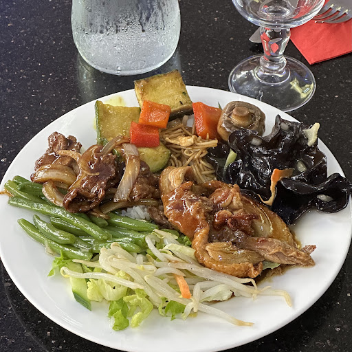 Fantastic place. Had a wonderful meal last night with lots of choice. The best bit is taking a plate of raw stuff to the chef and watching him cook it in front of you. The choice of desserts is price too. Very tasty and very cheap compared to other local places. The lady in charge of service was so good too. The best restaurant in the area for familyâs on a budget.