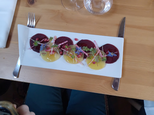Read moreThis restaurant was advertised as good for families with a nice atmosphere and a 15-20€ menu, We visited at lunchtime on a Saturday. The restaurant had been tastefully renovated and had a warm atmosphere, albeit subdued. We found there was a choice of 2 menus, one at 28€50 and the other at 38€50 - the 15€95 euro was only offered at lunch times during the week! The food was well cooked but portions were small. My tarte au citron dessert was nothing more than a broken biscuit with a dollop of sorbet on top and a very thin slice of what I imagine was meringue. ...
