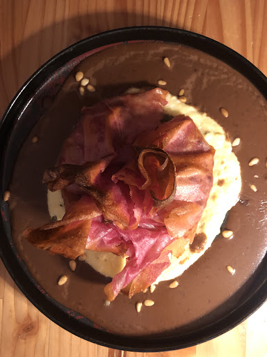 Read moreThis restaurant is a gem! An obviously inspired chef delivers perfectly balanced dishes all inspired by local traditions, local suppliers, interpreted in a most original and contemporary way. The restaurant is in an old soft-lit lime-painted vaulted room, frequented by families, couples, groups, nevertheless never dropping its intimate...