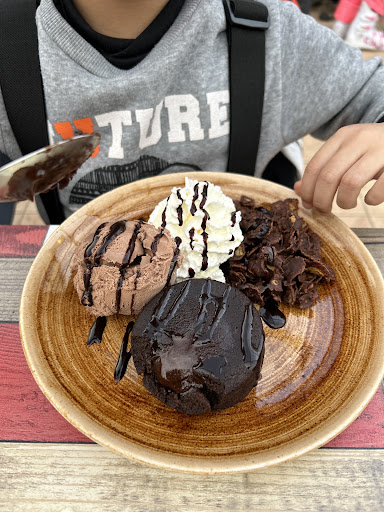Après 1 heure d’attente sans exagération : Total déception, « la truite de nos montagnes » en entrée a dû passer chez Leclerc ou Carrefour avant d’arriver au restaurant. La souris d’agneau de chez « MÉTRO » était belle, dommage que la semoule soit sans saveur et froide tout comme les légumes qui l’accompagnent. La pavlova aux fruits rouges n’a rien d’exceptionnelle.