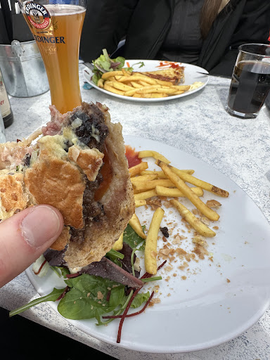 Talking about the food, it’s tasty but you don’t get a lot of French fries with any dish. The burger (€20) tasted good. The croque monsieur is nice and contains loads of cheese (€15). Weiß beer wil cost you €8, but Paulaner never...