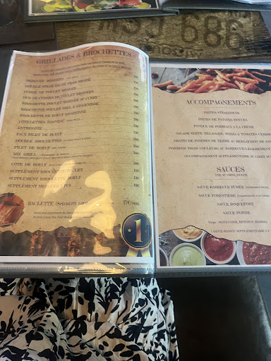 Read moreArrivĂ© en dĂ©but de service nous voulions essayer ce restaurant qui semble plutĂŽt correct et bon aux premiers abord (ce qui est dâailleurs le cas sur certaines choses, notamment la carte variĂ©e). NĂ©anmoins nous avons Ă©tĂ© déçu sur certains points. Voici donc les points Ă communiquer Ă vos collaborateurs afin quâils sâamĂ©liorent : Prise de commande longue ~15min aprĂšs notre arrivĂ©e. Cuisson de la viande trĂšs mauvaise et Ă revoir (au vu des avis nĂ©gatifs existant en ce sens, il fallait sây attendre) A deux reprises on nous apporte Ă notre table des plats qui ne sont pas les nĂŽtres, la serveuse semblait ĂȘtre perdu. Nous avons commandĂ© un rhum steak avec comme accompagnement un gratin de PDT, sauf quâon nous a servi des frites de patates douces Ă la place. Et quand jâai fais la remarque Ă la serveuse elle mâa indiquĂ© que câĂ©tait pour patienter le temps que le gratin arrive, what ???? Alors premiĂšrement il faut communiquer Ă vos serveurs quâon ne sert pas un plat alors que son accompagnement nâest pas prĂȘt, et encore moins on sert un accompagnement que nous avons pas choisis, enfin bref point Ă revoir ! Ceci dit le gratin de PDT servi 10min aprĂšs notre plat Ă©tait bon ainsi que la sauce poivre đđŒ.