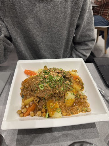 Lors de ma visite, j’ai dégusté un excellent plat de coquilles Saint-Jacques accompagné d’une délicieuse purée de patates douces. La pastilla, une de mes entrées favorites, reste un incontournable à chaque visite. Mes amis, eux, ont particulièrement apprécié le tajine d’agneau et le couscous à la souris d’agneau. À noter : la souris d’agneau est cuite à basse température pendant 15 à 36 heures, un procédé qui garantit une saveur exceptionnelle.