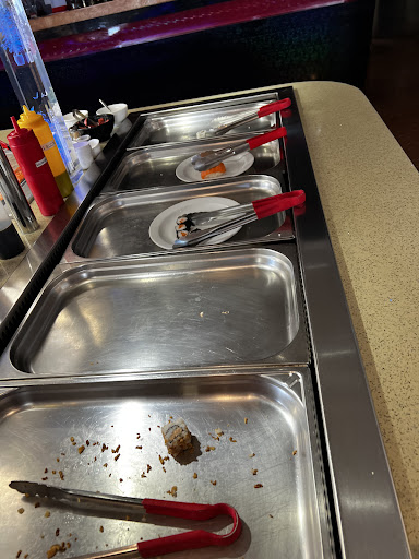 Points nĂ©gatifs selon moi : les sushis peuvent vraiment ĂȘtre amĂ©liorĂ©s (qualitĂ© du riz et du poisson) l'Ă©tiquetage est sommaire. Une Ă©tiquette pour 3 bacs de nourriture. On se perd et on se trompe... Voir mĂȘme on ose pas... Une Ă©tiquette indiquait crevettes en beignet. Mais s'adressait Ă 3 bacs... Dans le doute, comme je suis allergique, je n'ai rien pris. Ăa mĂ©rite plus de clartĂ© certains bacs sont trĂšs peu remplis. Alors bon, Ă la fois on Ă©vite le gaspillage et c'est bien. D'un autre cĂŽtĂ©, ça donne le sentiment qu'on va vite ĂȘtre Ă court de certains plats pas beaucoup de choix