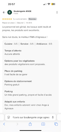 Ange agneaux à fuir ! Je suis passée à 19h35 pour récupérer une commande Too Good To Go. J’ai montré mon téléphone en disant que j’avais commandé un panier, mais que je ne savais pas si celui-ci était “surprise” ou “snacking”, car je ne l’avais pas vu. Après vérification avec l’employée, c’était un panier “surprise”. Je lui demande ce qu’ils mettent dedans. Elle me répond : « Surtout des pâtisseries. » Je lui ai répondu : « Super, c’est ce que je voulais. » Elle m’a dit que les commandes sont à récupérer à partir de 19h45, pas avant. Je repars donc attendre dans ma voiture. À 19h44, je retourne à l’intérieur. Deux personnes sont devant moi pour des Too Good To Go également. Elle les sert, puis vient mon tour, et là elle me répond : « Ah, j’en ai plus. » Elle commence alors à faire un panier en y mettant uniquement du snacking à la place des pâtisseries. Forcément, elle a tout donné aux autres avant, alors que j’étais arrivée la première. Elle me répond qu’elle ne l’a pas vu sur son téléphone. Finalement, un gros foutage de gueule du début à la fin. Je pense juste que l’employée aux cheveux longs et blonds l’a fait exprès. Il n’y a pas d’autre explication. Aucune excuse pour leur manque de professionnalisme, ni aucun arrangement ou geste commercial. Très peu aimable. À fuir. Dommage, nous venions assez souvent pour le pain et les viennoiseries le dimanche matin. Meilleure boulangerie à côté, je vous conseille " l’encas " L’enseigne Ange porte...