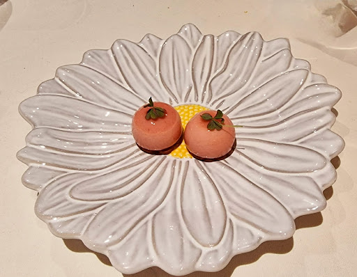 Qua bediening: Ster onwaardig Na het placeren van de gasten zou men wellicht kunnen vragen of er een aperitief geschonken kan worden (wij waren op dit moment de enige gasten) i.p.v. kaart geven en vragen naar allergieën. Na 10 tal minuten werd er naar het aantal gangen gevraagd (vast menu) en of men een aperitief kon inschenken (zonder te verwijzen naar een e.v.t. huis aperitief). We hadden regelmatig lege wijnglazen (we hadden een fles besteld) en een keer op verzoek kregen we wat bijgeschonken met de opmerking: ohh heeft u nog wijn.. (overigens de rode was mooi op temperatuur). Bediening vonden wij er een beetje rommelig bij lopen, de gastvrouw met vlekken op haar jurk en de gastheer een alledaags zwart/wit outfit. Bij de koffie hadden wij een Calvados besteld a €30 per glas (dit niet wetende totdat de rekening kwam) tsja het is niet anders. De café au lait was koud en werd opnieuw geserveerd, en we kregen 4 macrons erbij.