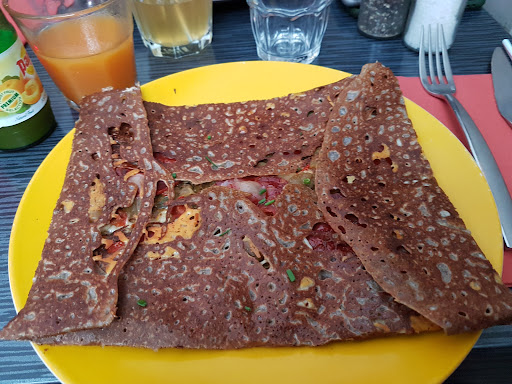 Seeking shelter from the lashing rain, the local shopkeeper pointed me towards a hidden little crêperie which was full of happy, smiling locals. I was the only tourist - wet, cold and miserable - but not for long! Thanks to a lovely fire and delicious galettes, this wonderful little crêperie had me smiling and full of the joys. The menu was sufficiently diverse and each galette was prepared and presented with great love and attention. Really delicious food complemented by a great team, all of whom made a solo-travelling Irishman and his tummy very happy. Highly...