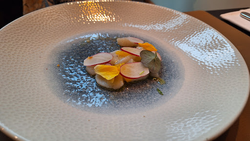 Overall the menu appears good and when plated the food looks impressive. We both ordered “The Egg” as a starter which was fairly good but not very memorable. My wife got the langoustine which was served with wantons also filled with langoustine. I ordered the pollock which was served with onion, potatoes and clams. In both cases the dishes were under seasoned and surprisingly bland. The pollock seemed to be cooked correctly but lacked a lot of a flavor.