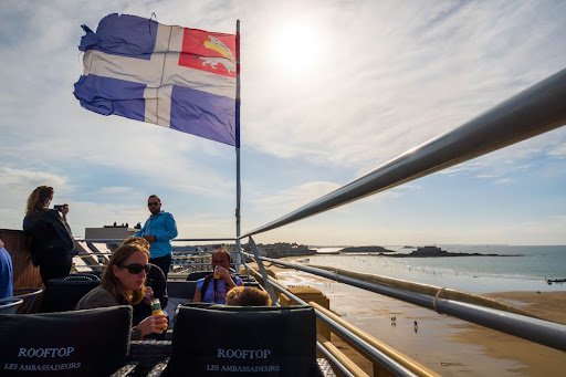 Read moreLe seul rooftop de Saint Malo, qui offre une vue magnifique sur la plage du sillon, et la cité corsaire. Par contre, attention, les places sont chères, et il n'est pas rare d'attendre 10 ou 15 minutes qu'une table se libère. L'endroit a été très mal aménagé, avec un énorme bar au milieu, qui aurait plutôt dû être installé dans le fond du rooftop côté route, afin de libérer de la place pour des tables supplémentaires côté mer. Il y a beaucoup de tables de 4 occupées uniquement par 2 personnes, et il serait plus logique d'installer des tables de 2 qui peuvent être regroupées en cas de besoin. Il n'y a pas de service à table, la commande se fait au bar. Nous sommes restés 45 minutes, et notre table, sur laquelle traînaient les verres et bouteilles des occupants précédents, n'a pas été débarrassées durant tout ce temps. Le prix sont cohérents pour un rooftop: 12€ le cocktail, et 7€ la...