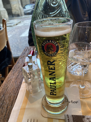 Each table got a starter of a small serving of a chicken pate wit crackers. Smooth, lightly seasoned. Also ordered appetizers. The Roasted Bone Marrows were two, sizzling good sized portions garlicy and slightly salty with crostini. Really good with the Paulaner lager. Also very good was a baked camembert with white wine and honey, crackers. Plenty of flavor that went well with a glass of cabernet.