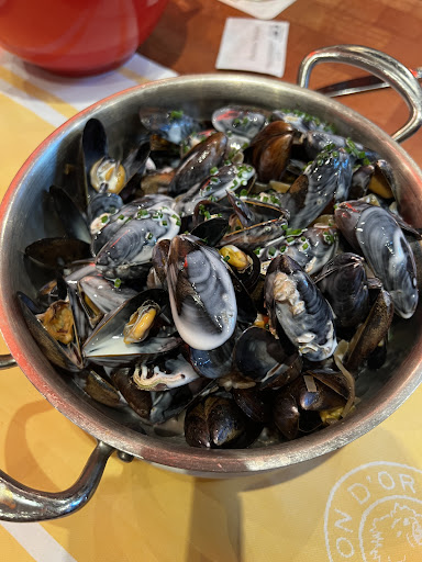 Read moreWe had the steak and mussels. Normally this cut of steak is know for its tenderness and flavor but it was really tough, I couldn’t chew through the sinew and silver skin, I had to spit out the meat. It was cooked medium but more red than pink. So it definitely was not the cook, it was the cut of meat. The mussels were lukewarm in temperature when they arrived but we don’t send food back, so we ate what we could and left. The flavors were ok. It was a nice presentation and the staff were really nice. If you eat here don’t sit inside near the bar/kitchen it was unbearably loud. My ears hurt sitting there….they wash the dishes at the bar. For the price you pay, it’s...