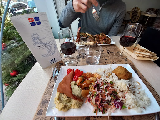 We were very pleasantly surprised to find this lovely restaurant on a wet January evening with only an hour to spare before catching the ferry. The owner was very friendly and helpful offering a wide range of Mediterranean food. This is not a posh sit down restaurant more a bistro style cafe restaurant. The food was homemade with a heavy Greek influence - delicious and very reasonable compared to some of the harbourside places we saw earlier. Chez Arthur is open everyday except Sunday and serves food through to closing at 23.00. Highly...