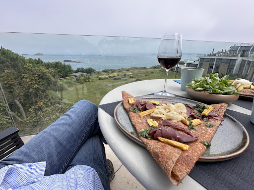 Read moreTrès bon déjeuner sur la terrasse panoramique de ce restaurant, avec sa vue époustouflante sur la mer. Gastronomie très fine, créative, un délice. Prix corrects. Mais le service ! Attention ! Pas cool du tout, visiblement la serveuse a ses têtes et les notres ne lui revenait pas,... pas encore installés et première reflexion autoritaire sur l'interdiction de " bouger la table" , mais pourquoi donc l'aurions nous fait ? Et tandis que les autres tables avaient droit à des explications détaillées et des attentions, nous,...rien. Nous n'avons même pas eu droit au verre de vin commandé,... elle s'en est pourtant souvenu au moment de servir les plats,...puis, de nouveau oublié ! présentation des desserts : " millefeuille chocolat ou perles du japon " pas de détails, ton agressif. Devant mon hésitation, interloquée par cette attitude incompréhensible, elle continue " alors ? Oui ou non ? " puis s'en va " je vous laisse réfléchir". Elle reviendra beaucoup plus tard, et nous ne prendrons rien pressés de quitter l'endroit. Dommâge, ça nous à gâché le repas. Je le conseille forcément mais dommage pour le service... Ma note ne sera pas plus de 3 à...