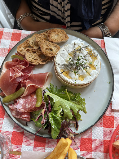 Very frosty reception. We were lectured about how you order inside in France (not our experience and we've been here a lot) and asked a number of times despite us answering the question if we wanted to eat. We were made to feel bad that she had to bring us a menu. Even if you get it wrong there's no need for such rudeness. We had a buggy and a small child and needed to sit after looking for a table for quite some time in the heat. We sat in many places before and got greeted and given menus no problem. We decided to leave as it wasn't worth feeling shamed and like we were a pain for her. Someone needs a bit of anger...