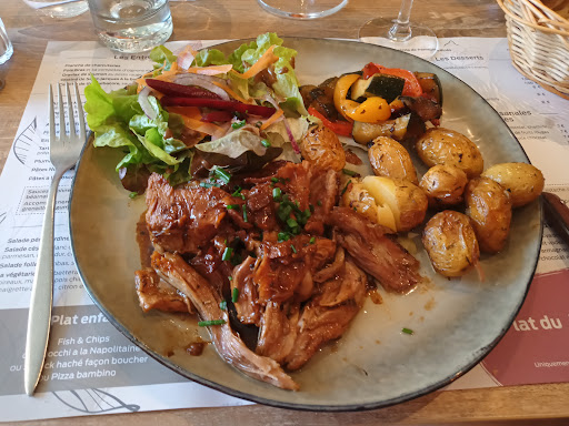 Lovely restaurant, lady owner very welcoming and friendly and spoke good English. Man owner in a bit of a hurry with us, he couldn't explain what the plat du jour was, he could have asked his wife to translate for us but he didn't so we ate from A la carte menu. Scallop starter was disappointing as was the Cafe Gaumond dessert, but the main courses were good, in particularly my 7 hour lamb which was DELICIOUS. Also I pointed at my 25cl.rose and asked the waiter for another but was brought a 50cl, the man owner could suddenly speak English when he said 'you asked for 50'!! Anyway we drank it, it was nice wine and overall we enjoyed the experience and would go again if...