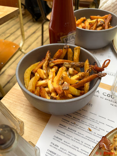 Nous avons été servi à 21h45 soit 1h après notre arrivée (un burger, 2 frites, 1 planche de charcuterie) Les frites étaient des bouts de frites (fond de la friteuse avec pleins d’huile), le burger est accompagné de deux feuilles de salade et la planche de charcuterie accompagnée de pain uniquement (pas de beurre). La carte est alléchante mais hélas pour nous ce n’est pas...