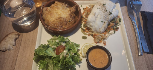 La cassolette de fruits de mer en entrée du menu était plus que réchauffée, desséchée même, les moules, calamars et crevettes mimuscules (vous savez celles en boite....), les huitres sont correctes, normales pas du au chef!! Planche de charcuterie pour 2 annoncées avec rillettes jambon cru et saucisson, les enfants ont été déçus 😞 😞 pas de rillettes, 2 rondelles de rosette, de la coppa qu'ils n'aiment pas et du jambon fumé qu'ils n'aiment pas et la encore ne correspondant pas a l'annonce faite...., autant dire pour 14€ une vrai arnaque poir du sous vide.... Le cabillaud servi ensuite n'avait aucun goût ! Je l'ai pris sauve à la crème et persil (je ne me souvient plus de l'intitulé exact) mon mari au chorizo aucun goût non plus... accompagné d'une poêlée de légumes infectes et de pomme de terre en Gratin comprennez : pomme de terre en tranche avec 1 cuillère de crème et un peu de fromage dessus. Aucun assaisonnement non plus. Et que dire des moules frites de mon fils: desséchées mais les frites étaient bonnes! Ma fille a pris une crepe mozza: première fois qu'on met la totalité des ingrédients sur une crêpe sèche...???? Pourquoi??? Les desserts: évitez les profiteroles surgelés aucun intérêt, le kouing amman lui aussi desséchée, et une crêpe sillon correcte même si couverte de chantilly..
