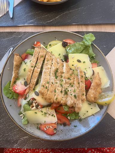 Read moreNous avons très bien mangé. La cuisine est fraîche et la carte sur ardoise avec des plats qui changent régulièrement. J'ai pris la salade du moment fraise noisette mortadelle et copeaux de parmesan un délice et super original. Les pâtes de la semaine extra sauce à base de tomates et lardons grilles. Extra. Les desserts faits maison sont aussi exquis pain perdu et crumble vraiment délicieux et fait sur place. Belle présentation et fraîcheur et originalité des plats bravo nous reviendrons avec grand plaisir. Conseils réservez car peu de place à l'intérieur et ne pas fiez au fait que ce soit petit car on mange très bien et on est super bien...