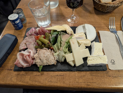 This restaurant that I went to during my stay in Saint Malo was superb. It was a very cosy place and within 15 minutes of opening all tables were taken which is a good sign, I had the charcuterie plate and some wine and coffee and it was all absolutely first class and pretty reasonable 36 Euros for a lot. The cheese selection was very impressive and the whole meal was very palatable. When I left I was stuffed and needed the 25-minute walk to my hotel afterwards to walk it off. I saw other diners choose fish and chips and of course the legendary Moules and it all looked terrific and judging by the lack of uneaten food I would say it all tasted good. The wine and coffee were both nice quality and the price quite reasonable so very...