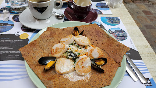 Read moreAlors notre avis est très mitigé... déjà si vous avez un chien même de 3kg et que vous avez un cher Monsieur en serveur .. tant pis pour vous ... nous étions en terrasse le serveur est arrivé notre petite chienne sans aboyer à juste sautiller .. il a refusé de prendre notre commande en criant : Alors la hors de question !! Au debut pensant que c etait de l humour ... mais non il nous a plantés la ... Du coup ne sachant pas si nous devions partir ou rester .. une charmante petite serveuse est arrivée toute mimi .. j ai dit désolé elle n a pas compris non plus surtout que notre chienne n a même pas aboyée une seule fois .. les gens à côté étaient aussi sidéré .. une fois notre galette servie encore par une autre charmante serveuse (qui n à pas eue peur de notre gros chien féroce un bichon maltais entre nous .. inoffensif) la cuisine est bonne ... Nous avons préférer prendre notre dessert plus loin .. Au moment d aller régler la note ... ce charmant Monsieur patron ou pas ne se gêne pas de passer une soufflante à ses jeunes serveuses devant la clientèle Nous étions des clients de votre établissement lors de notre passage dans intra murros .. mais c était la dernière... au risque que notre petit chiot ne salisse le pantalon de ce charmant Mr ... Dernière chose .. Au moins elle vous a dit bonjour à votre arrivée.. faites de même envers...