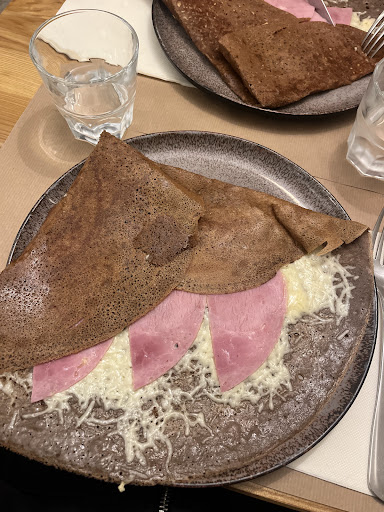 Je vous conseille vivement d'éviter cette crêperie, il y en a probablement des biens meilleurs pour un prix identique aux alentours. Etant donné que le restaurant ne donne jamais de réponse à ses avis, je doute que ce dernier cherche à s'améliorer, mais je tiens cependant à vous donner quelques pistes pour vous améliorer: intéressez vous un minimum à la satisfaction du client et mettez-vous à la place de ce dernier, seriez-vous content d'avoir une quantité de garniture aussi risible, et un service où les couverts nous sont balancés sur la table ? C'est dommage car la crêperie a du potentiel, les ingrédients ont l'air d'assez bonne qualité, et en faisant attention au service ainsi qu'aux quantités la crêperie pourrait sincèrement être bonne. Mais si vous jugez qu'il est plus intéressant pour vous de piéger des touristes qui ne savent pas où ils mettent les pieds et qui ne reviendront jamais par la suite, qu'il en soit ainsi, mais il sera normal que les notes aillent en conséquence, et un 3/5 est la note la plus généreuse que je...