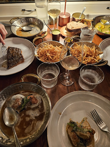 Read moreThe bread and butter to start your meal put you in the perfect condition to start your dinner. They have some wine and pet Nat by the Glass witch really enjoyable to have with your appetizer and amazing "huitres plates". The main are all coming with iron cast super hot and shinny and the garnish of your choice on the side. I had the ris de veau with gnocchi. All of it was perfectly cooked and seasoning. We skip the dessert for this time. The only minus point was our table was so close to the kitchen, where you could just hear noise . Appart of that we had...