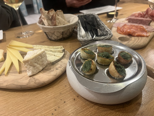 Fantastic wine bar with a cozy, inviting atmosphere. The wine selection is excellent, with knowledgeable staff who offer great recommendations. The escargots were perfectly prepared—rich, garlicky, and delicious. We also ordered a charcuterie board, and it was beautifully arranged with high-quality products. Perfect spot for a relaxed evening....