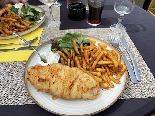Read moreTrès bon bistrot de mer. Accueil charmant, aimable , sans chichis ni familiarité. Excellent ! Venus déjeuner à deux avant la plage, nous avons partagé une très bonne terrine , copieuse, joliment présentée et goûteuse. Plats: Fish & Chips, belle portion , friture très légère, poisson bien frais. Extra! En dessert, une grande verrine sablé, pommes, caramel au beurre salé, chantilly: très bien. Le dessert a également été partagé. 1 bouteille de vin blanc HautMarin ,2 cafés. 80€ en tout. Nous avons trouvé l’endroit différent de ce qu’il était auparavant, mais très agréable aussi. La musique était un peu trop forte, et j’aurais tendance à la préférer un peu plus kitsch…ou lounge. Pour tous ceux qui fréquentaient cet établissement jusqu’à l’an dernier, les nouveaux propriétaires l’ont rafraichi et egayé avec goût, simplicité, confort, sans le transformer complètement. J’y vois une continuité de très bon aloi. Mis à part la musique, j’ai une seconde suggestion : un plat de moules serait bienvenu, elles avaient beaucoup de succès jusqu’à l’an dernier. Bonne chance à cette charmante nouvelle équipe, souriante, professionnelle, à la jolie...