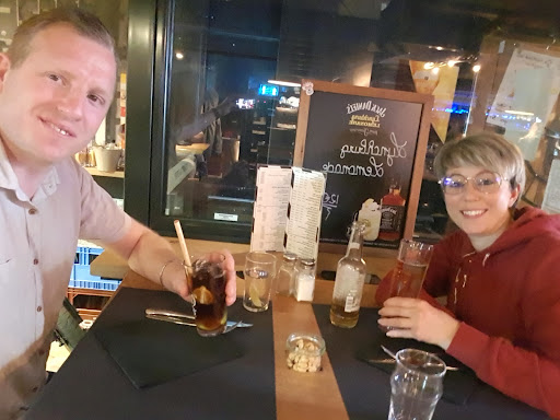 Read moreBonsoir, Pour commencer un apĂ©ro !âș Puis une entrĂ©e pour chacun, trĂšs bien pour moi en revanche pour mes amies moins... au goĂ»t ça allait, mais du jamais-vu pour un foie gras qui avait la texture et une vue gĂ©latineuse. Ont en Ă parlé et il nous a dit je vous fais un petit quelque chose pour les desserts. Le plat nickel, trop bon ! ArrivĂ© au dessert, une chaleur dans le resto du coup, j'ai rien pris d'autre, mais l'un oui et l'autre un cafĂ©. ArrivĂ© au paiement le dĂ©sert de l'un offert, mais pas le cafĂ©... Perso dĂ©goĂ»té pour eux, ça aurait Ă©tĂ© plus logique de faire sur les 2 entrĂ©es foie gras un pourcentage commercial. Mais bon... Petite prĂ©cision, le masque, ce n'est pas sous le nez et s'il vous plaĂźt (barmaid), mettez un masque, rien que pour vous trĂšs chĂšre. Et pour d'autres si vous avez chaud mettez un Ă©lastique cela vous Ă©vitera de toucher vos cheveux et votre "sueur" avant de prendre nos verres et nos assiettes.. Les toilettes des hommes, mettez un mot comme quoi qu'il n'y a pas d'eau et d'aller dans celle des femmes s'il vous plaĂźt.
