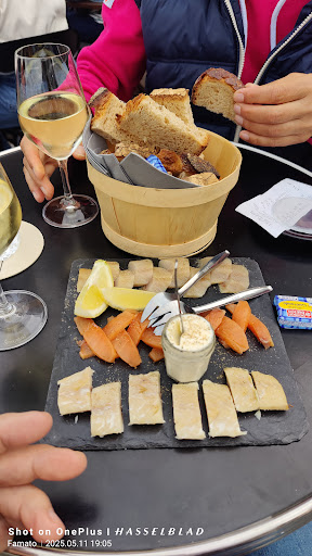 Located in the picturesque harbor town of Cancale at the head of the square. The terrace is pleasantly filled from morning to evening. Ideal for an aperitif with delicious oysters and a coupe de Champagne. It is also a place to be in the evening. Service is accurate...