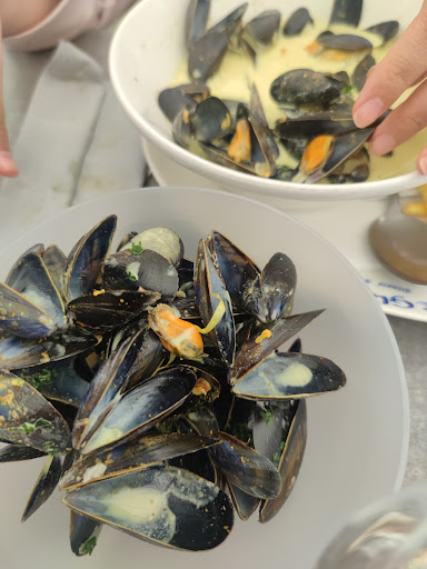 Read moreÀ fuir! On est arrivé vers 13h, 1h après nous avons eu nos assiettes, 1h d'attente oui on accepte, mais ce qui nous a surpris est qu'on a trouvé un morceau de plastique dans les moules, on a fait venir la serveuse et elle nous a expliqué que ça peut arriver et qu'elle le trouve normal...c'est exactement à partir de ce moment là que je ne suis plus à l'aise, la manière dont elle parle me semble qu'elle s'en fiche de ses clients et qu'elle n'allait pas proposer de solution, on n'est pas d'accord avec elle, en même temps un autre monsieur avec lunettes (je crois que c'est le patron) nous est venu avec des enfers a dit que le plat est offert et nous a jeté leur menu, pendant que je lui montre ce qu'on a trouvé il a vite retiré l'assiette et nous a demandé de terminer cette conversation car je suis en train de prendre les photos du plastique. Un autre collègue nous a présenté ses excuses malgré tout, on a accepté. L'histoire est simple, mais le résultat est mauvais, j'essaie de vous expliquer tout avec des phrases simples pour que tous les autres voyageurs comprennent ce qu'on a rencontré. Remarque: je leur ai demandé si mon amie doit attendre une autre 1heure, ils m'ont demandé de regarder combien de clients sont sur leur terrasse en attente de leurs plats comme si l'attente est ce qu'on mérite.Aucune excuses de leurs parts, je vous déconseille ce restaurant avec une équipe mal poli et mal organisé(car au moins 5 assiettes ont été cassés pendant 1h les serveurs sont venu...