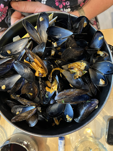 At first we thought there were individual weird moules in between, but it turned out the whole pot was the same. The moules were overcooked, dry and there was absolutely not enough soup/sauce on top. The fries were excellent, however, you didn't even get a pot to put sauce on, for the fries. We dumped these into a moules bowl.