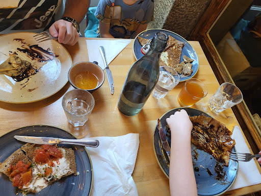 Read moreLovely little Creperie. Was very busy at lunchtime so we were lucky to get a table. Food was absolutely amazing, it was our first time trying gallettes and we were so glad we did. Crepes were very good, and apple juice and (homemade) cider were fantastic. Son made mistake of ordering chocolat which was dark so too bitter for him (may be usual for France, we didn't know), but daughter had Chocolat and caramel and was plenty...