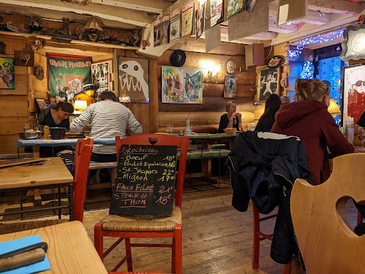 Les Mélèzes is my new favourite place in St Malo! The dining room is a feast for the senses with an overwhelming amount of weird and wonderful objects and pieces of art decorating just about every available piece of wall and ceiling. The other main feature of the room is an open fire/grill where the chef cooks the brochettes and steaks which are the signature dishes of the restaurant. I had the filet mignon of pork skewer which was cooked perfectly and served with a decent portion of home made rustic chips and salad. The other main dishes on the menu are a variety of cheese fondues and raclettes designed for sharing. This isn't your typical St Malo restaurant and maybe not the place for a quiet romantic dinner but otherwise it's brilliant.....also a 25cl beer is only €3 which in St Malo is...
