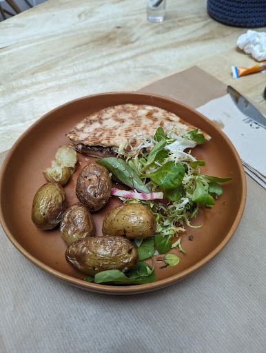 Nous nous sommes arrêtés pour déjeuner tardivement vers 15h, vu l'heure ils ne servaient plus toute la carte mais que les croques monsieur polaires (et les desserts) - ce qui n'est pas très grave en soi. Malheureusement les croq étaient vraiment très très secs, le pain polaire toasté n'avait aucun moelleux et était juste très dur, donc malgré la garniture correcte (sans originalité particulière mais décente), on avait juste extremement soif, il n'y avait pas de "liant" dans les croq, alors que quand on pense à un croque monsieur on veut quelque chose de gourmand, moelleux et agréable à manger. Aucune petite sauce en accompagnement proposée pour aller avec les patates. Heureusement qu'il y avait les quelques feuilles de salade ! La vinaigrette était très bonne. Le brownie au chocolat était lui aussi très sec, donc sûrement pas fait maison, il avait le même goût que les brownies industriels achetés en grande surface, et la chantilly avait un goût très industriel aussi, presque que de l'air et aucune gourmandise, plutôt décevant globalement. Le cidre IPA était par...