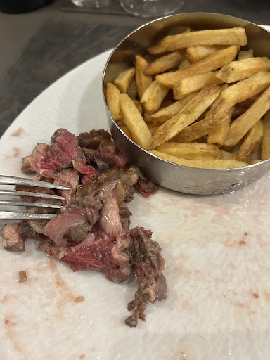 Cependant, pour ajouter un peu de piment à notre soirée gastronomique, nous avons joué au jeu excitant de "Chasse la boisson et le dessert". Le service était tellement lent que j'ai presque pensé que nous étions au marathon des tortues. Quant à ma viande, demandée bleue, elle avait un aspect si confus que même un psychologue n'aurait pas pu l'interpréter mieux : entre à point et saignant, avec un morceau d'une tendresse digne d'une chaussure de randonnée.