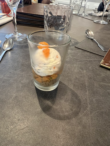 Un peu plus de détails : dessert: De mon côté, j'ai pris une palvova fruits rouges. Comme dit précédemment il y avait de la moisissure sur une framboise (heureusement que je l'ai vu car c'était sous un dôme de crème...). Le responsable a constaté la présence de moisissure et m'a ramené une autre palvova (j'aurai préféré que non car j'ai été un peu refroidi...). Dans la nouvelle, il y avait un écrasé de framboises avec beaucoup de glace; je n'aime pas la glace et je l'avais dit en début de repas. Au final j'ai mange une partie de la crème et une partie de la meringue. On ne m'a pas demandé ce que je pensais de la deuxième palvova. En prenant du recul la palvova n'était pas mauvaise et le visuel était original mais le rapport qualité prix n'y est clairement pas. (12€ le dessert avec uniquement des framboises comme fruits rouges...) Mon conjoint a pris un nougat glacé. Pour lui le dessert était correct mais le rapport qualité-prix n'y est pas (9€ le dessert) repas: nous avons pris tous les deux le poissons et avons tous les deux le même avis. L'assiette est arrivée chaude, le poisson également mais les accompagnements étaient tièdes. Je pense que c'est l'une des raisons pour lesquelles nous avons été un peu déçus du plat. Par contre, je tiens à préciser que ça se voyait qu'il y avait du travail dans ce plat. service: il y a eu plusieurs "petites" erreurs: pas de proposition d'eau, de pain ... pendant tout le repas, les serveurs étaient occupés sur les autres tables et ne sont pas passés nous voir pendant le plat. Nous sommes arrivés en tout début de service et on nous a demandé de choisir les desserts des le début si on souhaitait en prendre car le service allait être "rempli". Nous nous sommes un peu senti coincés contre le mur et nous avons pris chacun un dessert, nous aurions dû répondre au serveur que nous prendrons peut être des desserts et lui diront après le plat principal. Au vu du plat, je ne pense pas que j'aurai pris un dessert... Le service est aussi un peu en dessous pour un restaurant avec un maître restaurateur. Nos attentes sont supérieures d'un bistrot ou restaurant décoration intérieure : personnellement j'ai apprécié la décoration c'est tout à fait à mon goût. Mon conjoint a trouvé ça "bien" malgré que ce ne soit pas son style. Les habits des serveurs étaient bien.