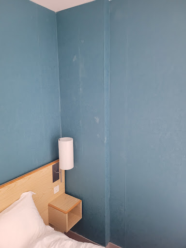 En revanche pour l'hôtel c'est une toute autre histoire. Nous avons réservé via Booking. Une fois arrivé nous avons constaté qu'ils nous avaient mi dans une chambre non rénovée. Nous n'avions qu'une ampoule sur 2 dans les lampes de chevet. Le néon de la salle de bain ne fonctionnait plus. Le personnel a dû chercher un autre néon dans une autre chambre car ils n'en avaient pas en stock. Heureusement pour nous, l'hôtel n'était pas complet.