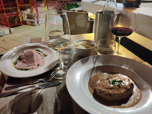 Amazing food and service! Great value! so worth it! We even got to meet the Swiss Chef! :-) He apparently used to work for high end restaurants before getting his own business. He seemed so down to earth and humble about his culinary gift. Tonight, we had 2 main dishes, the lamb (28 Euros) and the special duck plate (26 Euros) and both were beautifully presented with great attention to details and the sauce that came with it was succulent. We finish our evening with a nice dark chocolate mousse (10 Euros) but we are coming back tomorrow for the “Royal” chocolate decadent dessert for 13 Euros - I will try to make some room for it in my belly :-) Encore Bravo au Chef et à toute son équipe! This was one of the best restaurants from the 3 islands (Anguilla, St Barts and St Martin) we have visited in the past few weeks and to make it even better at a totally affordable price! From all the places we have been, there were the only ones offering something to us for free… their in-house vanilla banana rhum digestive! What a beautiful memory and evening you provided us. Merci. 😇 PS: de retour ce soir et le “Royal” au choco est unique! à essayer Messieurs Dames :-)