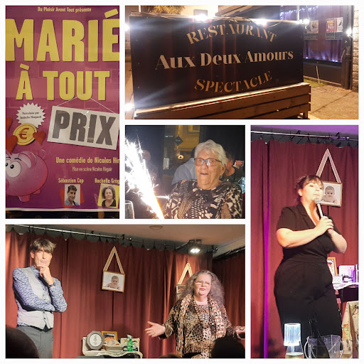 Read moreEnfin un lieu UNIQUE ! (ça change du standard d'une chaîne de restaurant). Décor magnifique 👏 et ambiance très cabaret rétro 🎭. Le concept de dîner/spectacle est recherché et réfléchi. La salle n'est pas grande mais on a l'impression d'être un invité privilégié. Le rendement n'est pas recherché et c'est rare de nos jours ! La patrone a un très joli brin de voix (prof de chant par ailleurs). Attention : malgré que les plats soient simples mais excellents, le cuisto a eu la main lourde sur les assaisonnements de plats et les alcools étaient très forts 🥵. Bref, la passion était dans la cuisine 😅. Quant au spectacle, humour sur toute la ligne de ce duo qui ne demande qu'à se faire connaître. Les artistes changent chaque semaine. C'est donc très renouvelé. Bref, soirée vraiment agréable entre amis et qui change de...