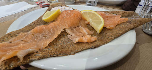 Read moreJe ne pourrais pas y noter les plats car nous sommes partis avant. Nous sommes venus pour y manger, nous étions la 4eme table, à notre arrivée il y avait qu'une table qui avait terminé leurs plats, pour le reste personne n'était encore servi. Pendant près de 10min le serveur tournait en rond dans la salle, hors il y avait des assiettes à débarrasser et des commandes à prendre : je ne sais pas pour les autres mais nous avions déjà fait notre choix et nous avons essayé de le montrer... Ensuite très vite la salle se rempli. Le serveur pas pressé pour autant et après 20min d'attente il prend seulement la commande d'une deuxième table de 8 personnes... Autant vous dire que nous perdions patience, mon fils de 2ans attendait sa galette et comment lui expliquer qu'il fallait ENCORE attendre... Le serveur vient vers nous pour nous dire "j'arrive prendre votre commande, je cours", et part prendre la commande d'une autre table.. pour commencer je crois que nous n'avons pas la même définition du mot courir, je n'ai jamais vu un serveur aussi lent et pour autant faire autant de déplacement dans la salle inutile.. bref on est arrivé au bout de notre patience nous sommes partis après presque une demi heure d'attente sans même avoir bu ne serait ce qu'un apéritif ! La table à côté songeait à faire de même... C'est la première fois que nous voyons ça dans un restaurant, je n'imagine pas en pleine saison. Enfin... Nous sommes rentrés bredouille et mon fils a pu manger sa galette le lendemain dans une crêperie où tout était bien...