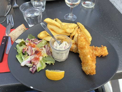 ARRĂTEZ TOUT!!! ici se trouve le MEILLEUR fish and chips que jâai eu lâoccasion de goĂ»ter aprĂšs avoir traversĂ© la France en long, en large et en travers ⊠AprĂšs avoir flĂąnĂ© dans Pornic nous avons Ă©tĂ© attirĂ© par lâidĂ©e de dĂ©gustation dâhuĂźtres⊠Pour info on vous proposera le plateau+ 1 verre de muscadet (quâon a commandĂ© avec joie!) bon alors pas de bol pour nous ce jour lĂ il nây avait plus dâhuĂźtres ! QuâĂ cela ne tienne Thierry [le patron, au passage Bonjour Thierry :-) ] nous indique un peu peinĂ© quâil nâen avait plus et nous propose Ă la place un fish and chips et nous offre les verres de muscadet servit en amont ⊠haut les cĆurs! Nous prenons le conseil avec beaucoup dâenthousiasme et acceptons son geste trĂšs gĂ©nĂ©reux (et aprĂšs tout fish and chips en bord dâocĂ©an âŠwhy not! ) et bien Thierry nous a servit du dĂ©but Ă la fin et franchement je nâai pas les mots tellement nous avons pris plaisir Ă savourer ses plats! Un poisson FRAIS, juteux, savoureux ⊠frit Ă la PERFECTION aucun point de trop cuit ou de brĂ»ler, servit avec des frites et leur MAYONNAISE !!! OH MON DIEU LA MAYONNAISE!!! Je nâen ai jamais mangĂ© une si bonne!! Je suis mĂȘme allĂ© en demander une deuxiĂšme bolinette!!! (Câest un petit bol!) , vient lâheure du dessert moelleux au chocolat Ă deux ! FAIT MAISON un goĂ»t fantastique servit lĂ©gĂšrement chaud ! TrĂšs franchement si un jour on repasse sur Pornic on reviendra EN COURANT!!! Une Ă©quipe dâune gentillesse incroyable⊠LE SOURIRE et lâamabilitĂ© au rdv! MERCI Ă THIERRY et son Ă©quipe pour ce fabuleux moment! Surtout ne CHANGEZ RIEN! Restez comme vous ĂȘtes chaleureux, conviviaux , accueillant ! Une cuisine quâon aime dans le genre de restaurant sur lequel on aime tomber â€ïžâ€ïžâ€ïžâ€ïž On a aussi beaucoup apprĂ©ciĂ© la vue en mangeant đ je vous laisse constater par vous mĂȘme âŠ. Soyez confiant, vous pouvez y aller les...