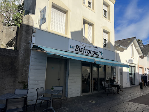Dimanche 8 mai, Ă la recherche d'un restaurant pour un petit diner en famille sur Pornic. Envie d'un bon Tartare. Hop, une petite recherche sur le web, une rĂ©sa au Bistronomi'k (c'est simple comme un coup de fil) et nous voici, avec ma sĆur et mon beauf', partis pour le 20 rue de la Marine. Le lieu est agrĂ©able car, malgrĂ© la mĂ©tĂ©o trĂšs clĂ©mente, la rue de la Marine est protĂ©gĂ©e de l'effervescence rĂ©gnant sur le port. Accueil chaleureux, et c'est Gwen qui s'occupera de nous. Elle est adorable, est en plus trĂšs pro, pleine d'humour tout en ayant du caractĂšre. Mais je m'Ă©gare... đRestons objectifs đ Installation en terrasse. Nous commandons des Mojitos, tout Ă fait honnĂȘtes et accompagnĂ©s d'une petite tomme des marais (un fromage local). Votre serviteur ne mangeant pas de fromage, Gwen insiste pour m'apporter Ă la place une "petite" (il faut vous dire qu'avec Gwen tout est "petit" đ) et dĂ©licieuse verrine de tartare de saumon . Touchante attention. Pour l'entrĂ©e je jette mon dĂ©volu sur un ceviche de maigre aux agrumes excellent ! Gwen me demande si je sais ce que c'est que le maigre, ce Ă quoi je tente un trait d'humour Ă deux balles en lui rĂ©pondant que ce n'est pas moi (et oui, je ne manque jamais l'occasion de faire un... "bide"). Le poisson est frais, les agrumes et la salade qui l'accompagnent Ă©galement, c'est trĂšs fin (comme dirait l'autre ça se mange sans faim). Puis suit le Tartare tant attendu et de trĂšs bonne facture. Il existe en deux versions, classique (celle que je choisis) et Bistro, plus Ă©picĂ©e avec des noix de cajou et de la menthe fraĂźche (c'est bien ça Gwen ?), le choix de mon beauf'. Nous sommes aussi ravis l'un que l'autre, la qualitĂ© est au rendez-vous. Pourtant Dieu sait qu'il est difficile qu'un Tartare servi prĂ©parĂ© fasse l'unanimitĂ©. Un bĂ©mol ? Peut-ĂȘtre les frites, que pour ma part je prĂ©fĂšre un peu plus croquantes et un peu moins cuites, mais ce n'est qu'affaire de goĂ»t et elles ont en tout cas le mĂ©rite d'ĂȘtre maison. D'ailleurs tout est fait maison. C'est en tout cas ce que nous affirme Gwen đ lorsque je lui pose la question. Maison et en plus concoctĂ© avec des produits locaux, de producteurs dont la liste exhaustive est fournie avec la carte. Quant Ă ma sĆur elle se rĂ©gale d'un filet de bar crĂšme coco curry de Madras. Puis vient le dessert... Mon beauf' craque pour la tarte au citron meringuĂ©e, un choix validĂ© par notre merveilleuse hĂŽtesse, et par lui-mĂȘme lorsqu'il l'a avalĂ©e. Quant Ă moi j'opte pour le ronflant "Duo chocolat noir et Dulcey, biscuit pralinĂ© Speculoos". Bah je vais vous dire, il peut se permettre d'avoir un nom qui s'la pĂšte ! Si vous aimez le chocolat c'est Ă se damner, si ! si ! Le tout arrosĂ© d'un Anjou rouge sans prĂ©tention mais qui fait son office. Et enfin le petit cafĂ© qui va bien pour clĂŽturer ce repas. Une douloureuse dont je ne connais pas le montant (j'Ă©tais invitĂ©) mais la formule EntrĂ©e+Plat+Dessert Ă 28⏠(+1⏠pour le Tartare) n'est vraiment pas excessive, surtout pour Pornic. En bref, un trĂšs bon moment que je vous conseille et que j'ai hĂąte de renouveler. Ah ah , je vous entends, mauvaises langues dire que Gwen y est pour quelque chose. Certes ! Mais...