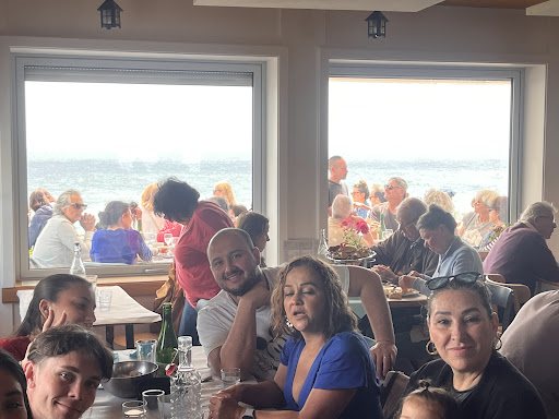 OK, il y a l'emplacement et le folklore d'un resto sans réservation dans lequel il faut se mettre dans la queue entre 15 et 30 minutes avant l'ouverture pour avoir une table au premier service. Effet collatéral, le resto est plein de suite et le service et la cuisine fonctionnent de suite sur un rythme très élevé... quasi fordien... qui permet de servir vite et de libérer les tables pour ceux qui attendent toujours. Et alors que nous sommes installés sur le premier rang face à l'océan, un groupe de gros beaufs bruyants vient se poser à 50 cm de la table sur les rochers au pied de la terrasse. Le ton monte rapidement, on est à deux doigts d'en venir aux mains... évidemment aucune aide des serveuses trop occupées à prendre les commandes pour remplir le flux... et même pire, ils commandent du rosé et seront servis là, à l'extérieur de la terrasse, installés pour l'apéro. On était venu pour un dîner tranquille face à l'océan, on se retrouve avec un dîner au camping, l'horreur. Côte cuisine, les bulots étaient king size et excellents pour moi, trop poivrés pour ma femme. Les galettes arrivent... on avait commandé andouille, on aura saucisse... évidemment dans le stress du flux on peut faire des erreurs... la serveuse propose de les changer, non, on a pas vraiment envie de prolonger à côté des beaufs qui nous ont gâché le dîner. On reviendra hors saison pour ne pas rester sur cette...